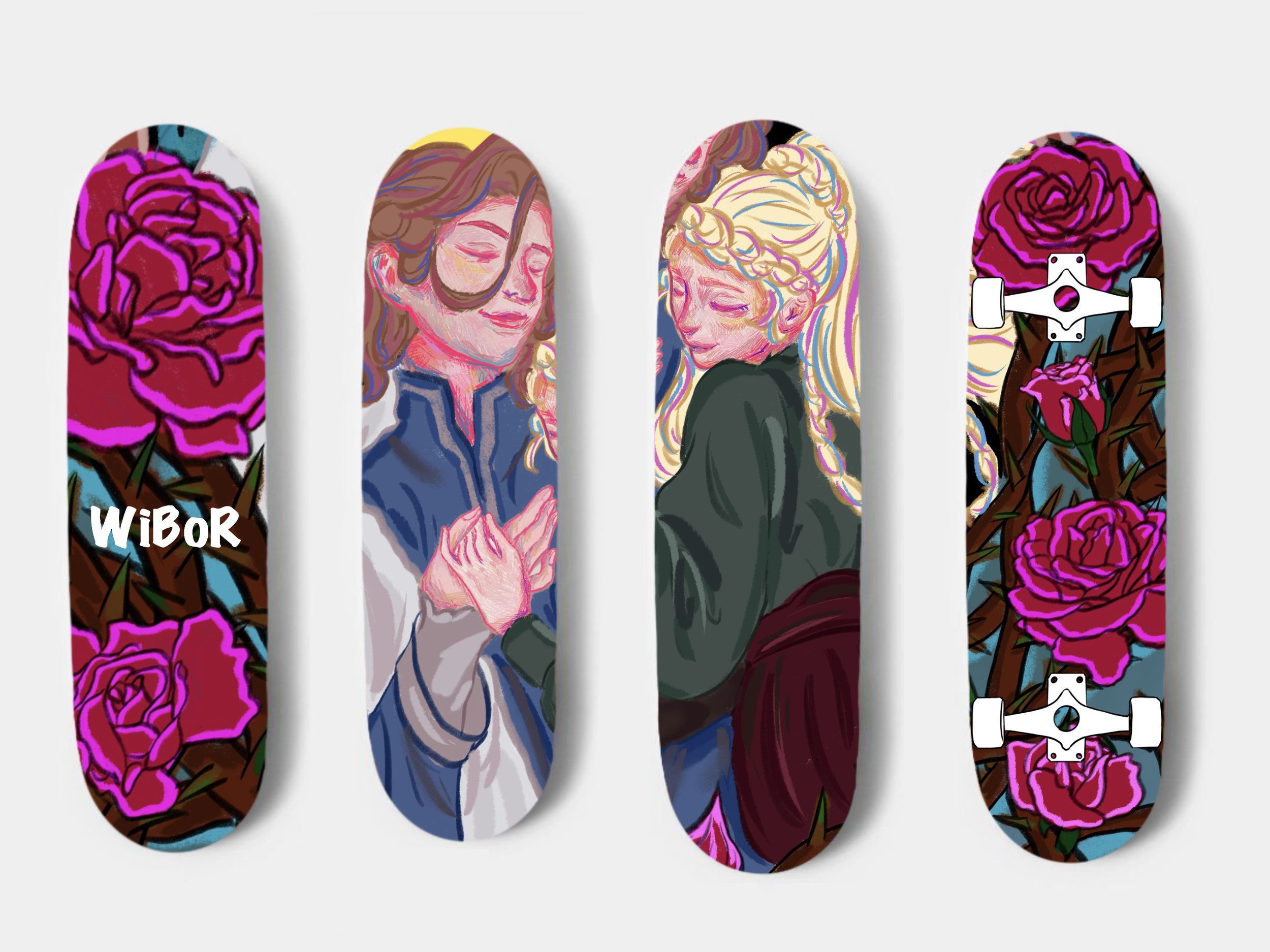 Introducing Wibor: wind + board. my skateboard brand designed for young women. As an illustrator, I fell in love with skateboarding not for style or performance but for the freedom and fun it brings. Living in Blue Mountain, Canada, I started using skateboards for commuting and became fascinated by their designs, materials, and patterns. Frustrated by the male-dominated market, I began creating skateboards adorned with my own illustrations, perfect for girls who appreciate unique, artistic designs. Wibor is my passion project, celebrating the joy and creativity of skateboarding.