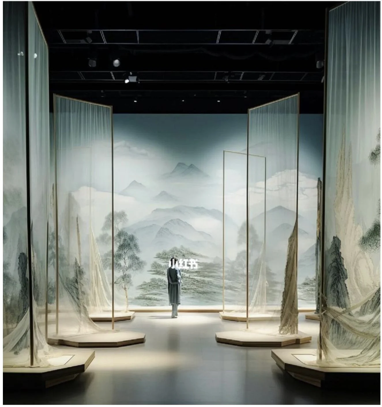 "Between Mountains and Rivers" (BMR) is an art installation inspired by traditional Chinese ink painting techniques and the concept of "blank space," as seen in the philosophical ideas of Laozi. The project aims to create an immersive landscape experience by suspending two landscape paintings and extending the blank spaces representing rivers into the physical space, thus creating a complete landscape ink painting. The installation uses traditional rice paper to break the boundaries of the canvas, expressing emotions related to space and scenes.