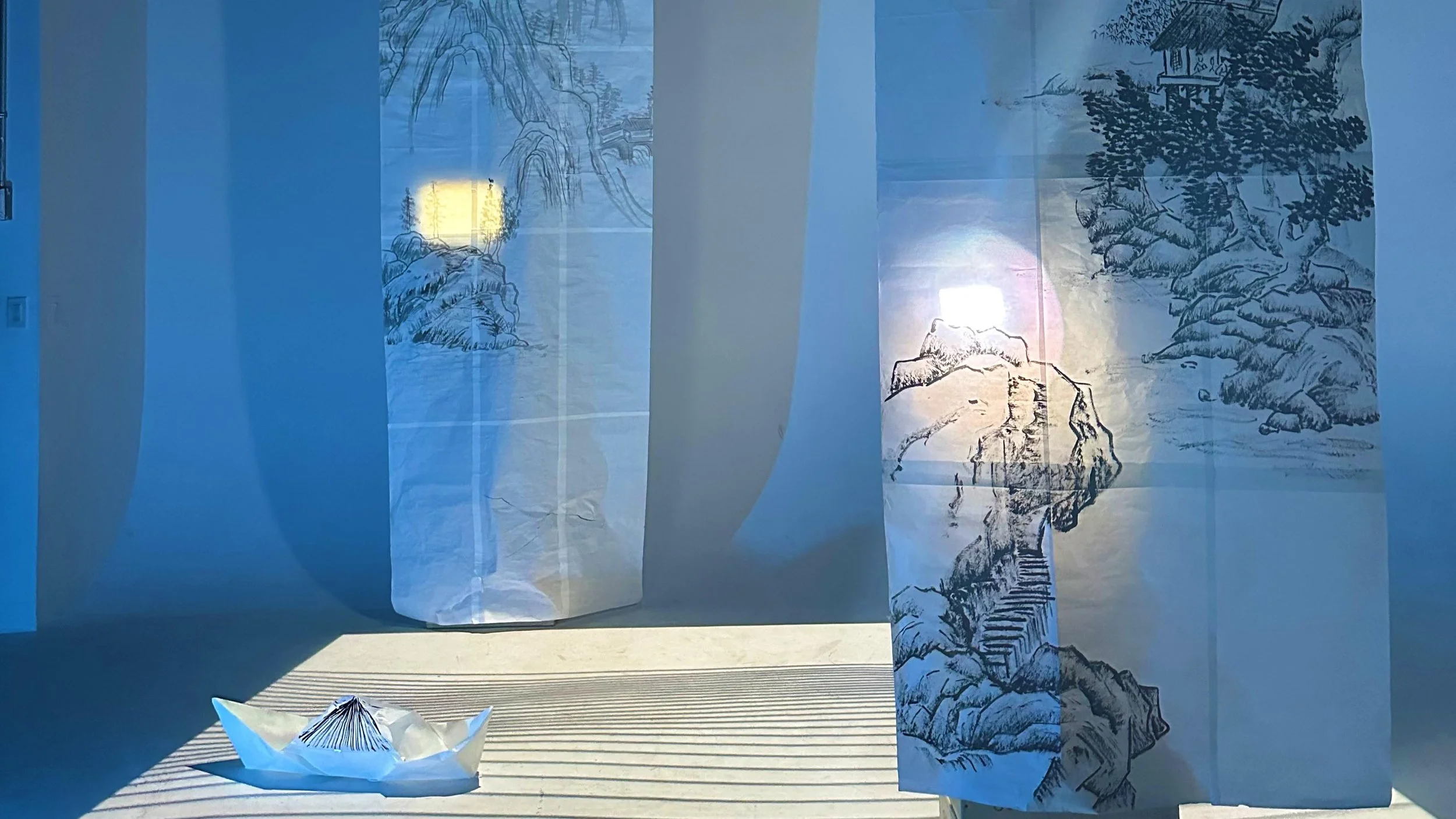The group decided to simplify the landscape and reduce the number of suspended rice paper pieces to emphasize blank space.